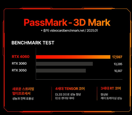 RTX 4060 그래픽카드가 탑재되어 있어 배틀그라운드, 콜 오브 듀티, GTA V, 스타필드 등 최신 고사양 게임도 FHD 환경에서 매우 쾌적하게 플레이 가능합니다.