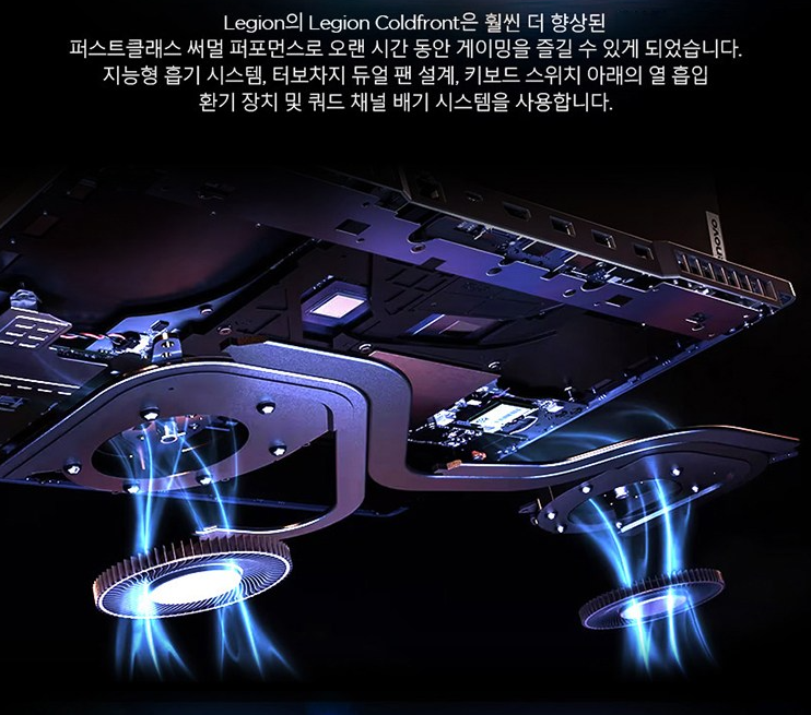 레노버 리전 5는 듀얼 팬 + 히트파이프 구조를 통해 장시간 고부하 환경에서도 발열을 효과적으로 제어합니다. 쿨링 설계가 타 브랜드 대비 훌륭하다는 평가를 받고 있습니다.